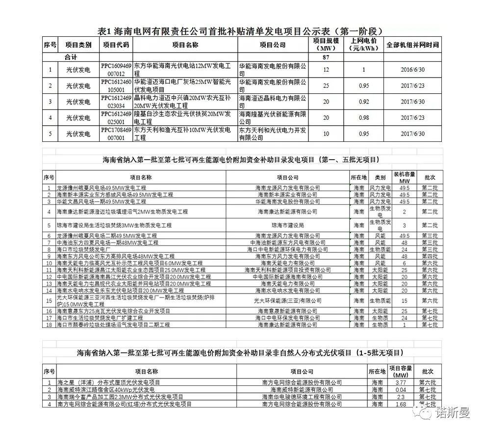 3. 海南省可再生能源电价附加补贴清单申报发电项目复核通过项目名单(首批补贴清单第一阶段)