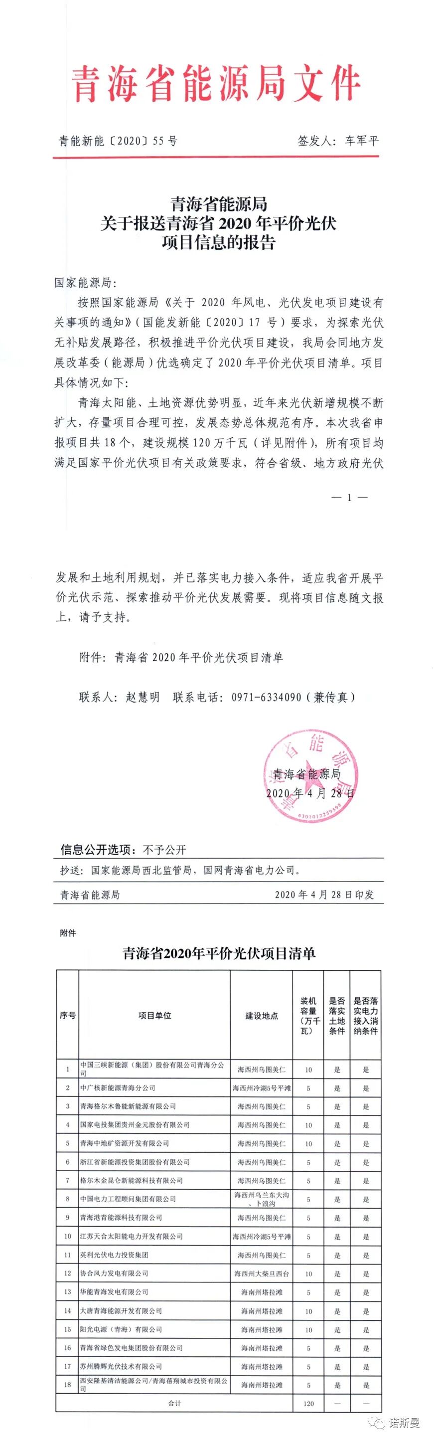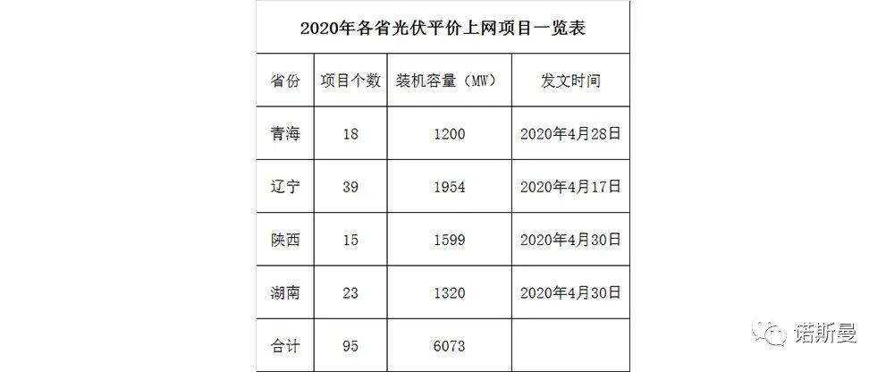青海省、辽宁省、陕西省、湖南省公布了2020年平价光伏项目名单
