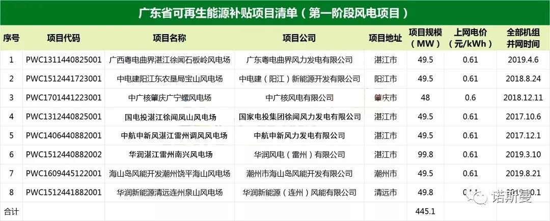 1.广东省可再生能源补贴项目清单(第一阶段)