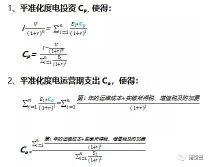 此时,我们今天的主角平准化度电支出即将出场,出场前,我们先引入两个定义:平准化度电投资Cp及平准化度电运营期支出Co。